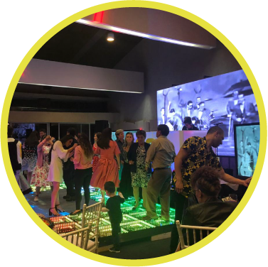 Este es nuestro producto top para baile. Una pista de 5x7 metros que es una combinación entre pista pantalla de led y pista infinita para bailar. Funcionan de manera independiente una reproduciendo archivos de video y la otra patrones de luces alrededor de la primera.